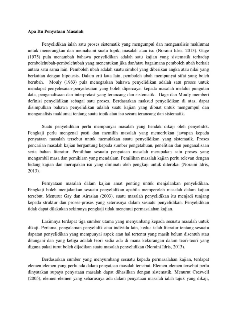 Contoh pernyataan masalah dalam kajian penyelidikan cute766. Bahagian pernyataan masalah statement of the problem. Pernyataan masalah adalah esei ringkas yang biasanya memperkenalkan laporan. Wan mohd khairul firdaus wan khairuldin.